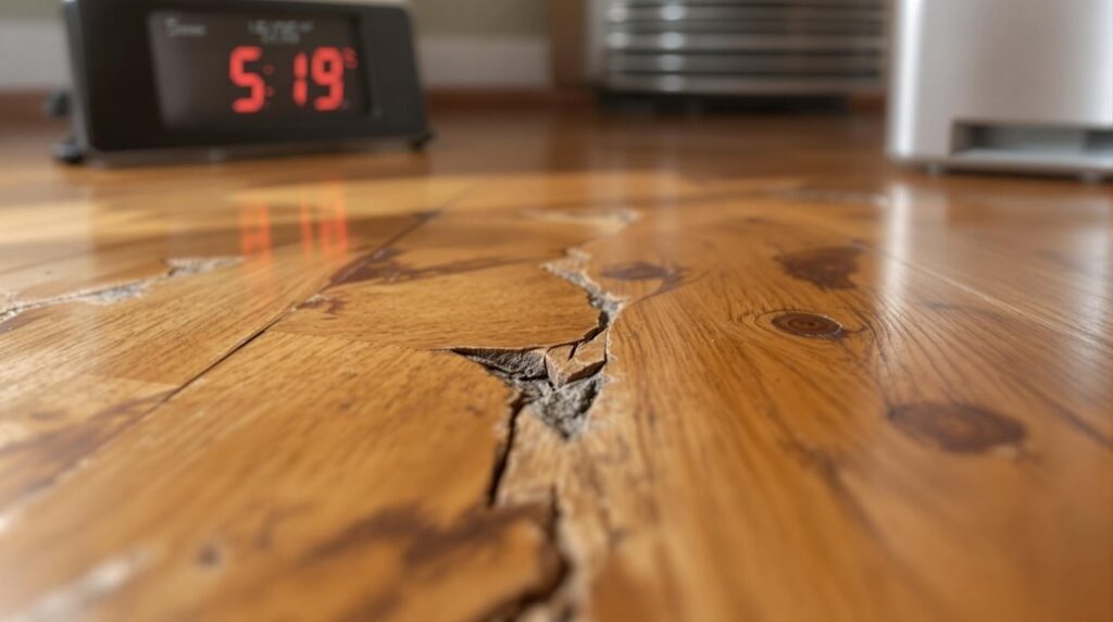 • Low humidity results in wood shrinkage, creating gaps between floorboards and compromising structural integrity.